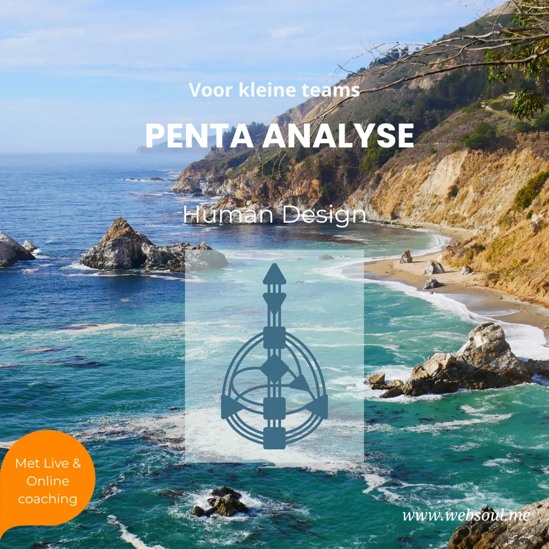 Een Penta Analyse brengt de dynamiek van een team of kleine groep in kaart. Je ontdekt waar de kracht van jullie samenwerking ligt, waar spanningen ontstaan en hoe ieder lid het best tot zijn recht komt. Inclusief uitgebreid verslag en gezamenlijke sessies.